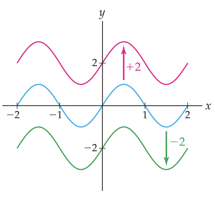 As a result, the graph of \(g(x)=f(x)+c\) is obtained from the graph of \(f\) by βshiftingβ it a directed distance of \(c\) units. The modifier βdirectedβ is used here to take notice of the sign of \(c\text{.}\) More directly, assuming \(c\geq 0\text{,}\) we have the following graphical interpretation: