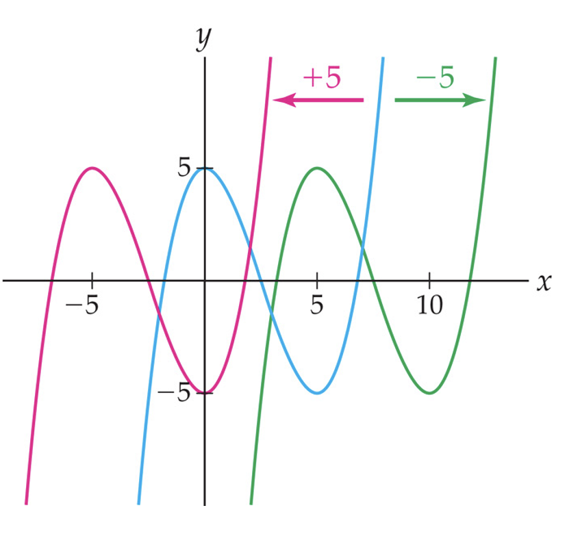 the graph of \(g(x)=f(x+c)\) is obtained from the graph of \(f\) by shifting \(c\) units to the left;