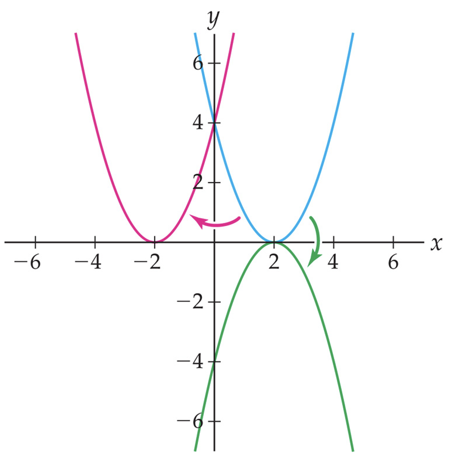 As a result, the graph of an arbitrary quadratic function can be obtained from the graph of \(f(x)=x^2\) by performing a horizontal shift, followed by a vertical scaling, followed by a vertical shift. FigureΒ 1.6.32 illustrates this process for the function \(g(x)=-2(x-1)+3\text{.}\)
