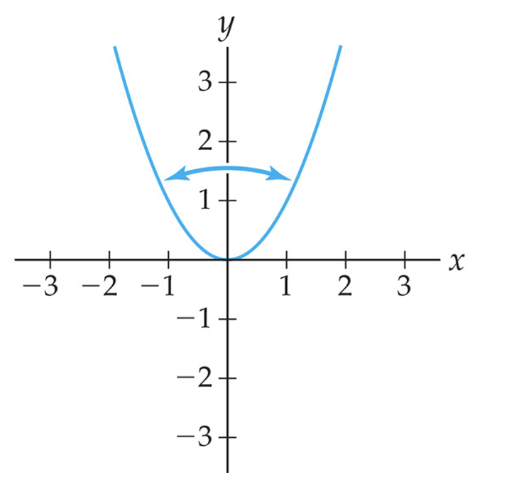 Some graphs do not change under certain transformations. For example, the graph of \(f(x) = x^2\) shown in FigureΒ 1.6.22 below remains the same if we reflect it across the \(y\)-axis. We say that this function has \(y\)-axis reflectional symmetry.